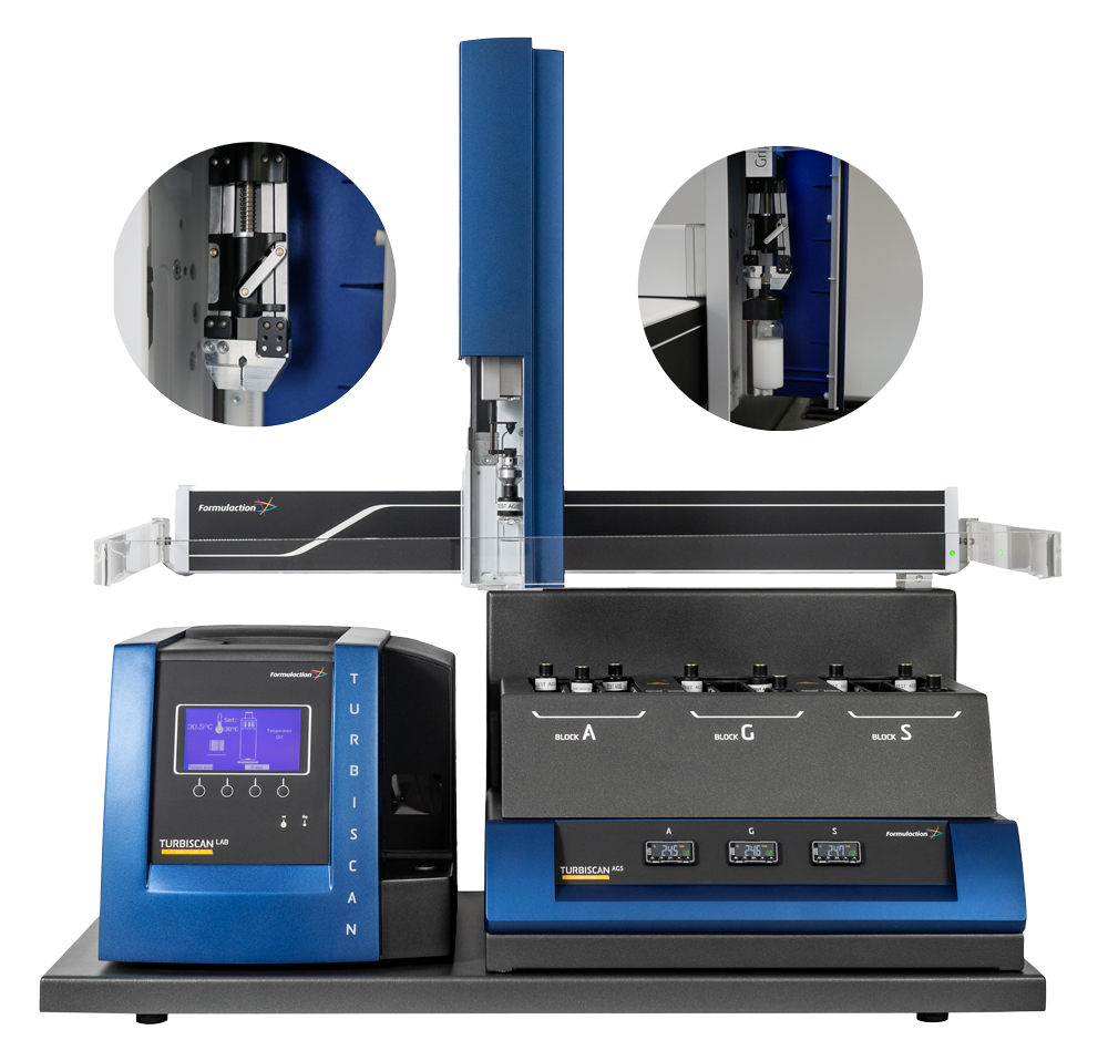 - TURBISCAN AGS Thiết bị phân tích tính ổn định mẫu lên đến 54 vị trí với cánh tay robot