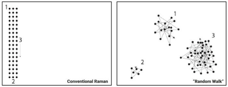 Đây là một kỹ thuật quét tiên tiến trong kính hiển vi Raman. Khác với phương pháp truyền thống quét tuần tự từng điểm, Random Walk “tìm kiếm” tín hiệu Raman một cách thông minh hơn.